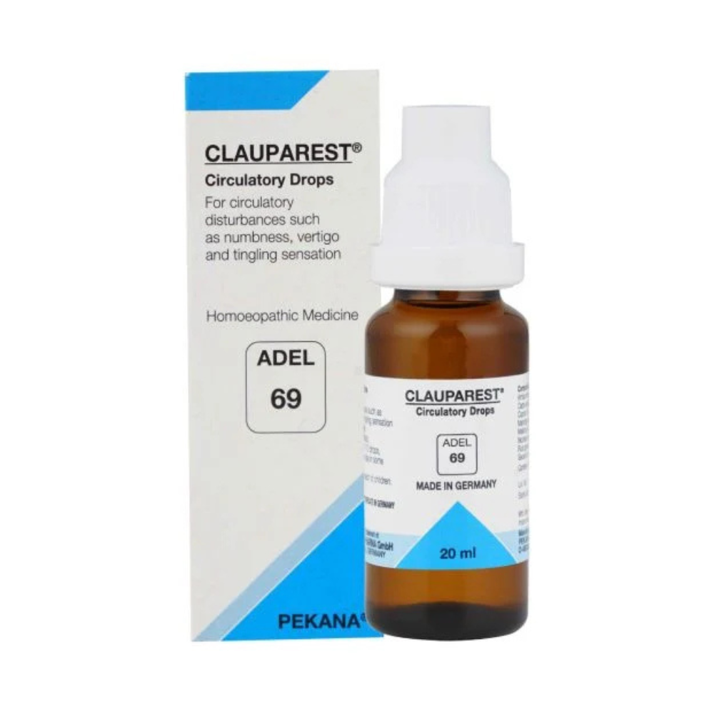 Circulatory disturbances can caused a wide variety of symptoms that range from numbness, Cramps and tingling sensations to gangrenous processes. ADEL 69 (CLAUPAREST) drops help eliminate these underlying circulatory disruptions, whether caused by injuries, metabolic anomalies or cramps triggered by psychological or somatic reasons. As a result, this medication allows the body to restore its self-regulation capabilities and function properly again.