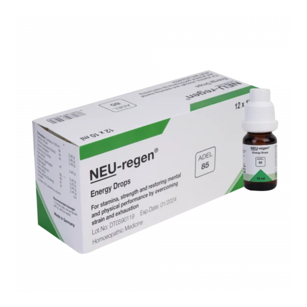 The fast pace of modern life places large demands on many individuals’ mental and physical performance. As a result, it is necessary to help the body overcome mental strain and emotional exhaustion. ADEL 85 (NEU-regen) drinking ampoule helps restore proper organ function and energetically balance the performance of the body through gentle regulation. In contrast, drugs such as stimulants and sedatives place even greater demands upon an exhausted body.