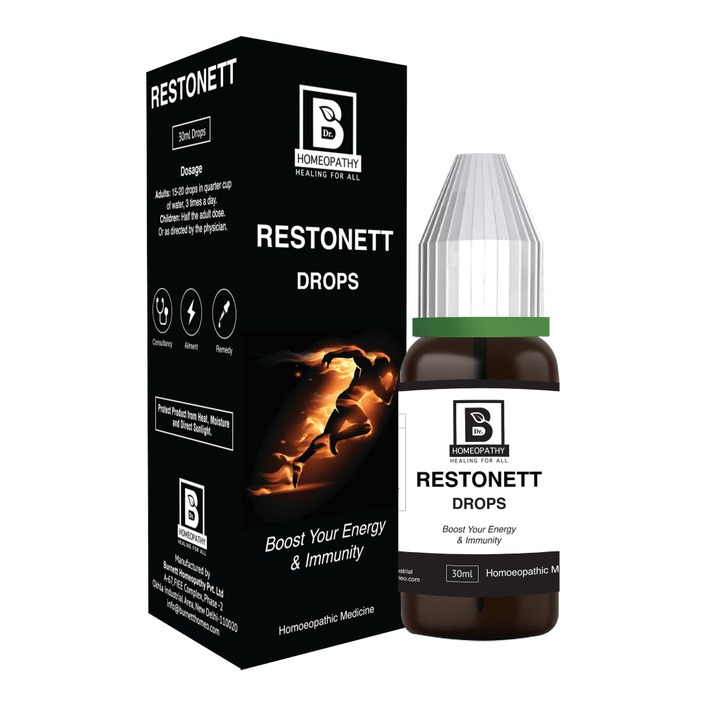 RESTONETT DROPS is an incomparable combination to boost your energy & immunity, it acts as a restorative tonic for all ages, for speedy recovery in convalescence after chronic illness, nervous exhaustion, extreme weakness, helps to restore the proper function of organs and balance performance of body by gentle regulation.