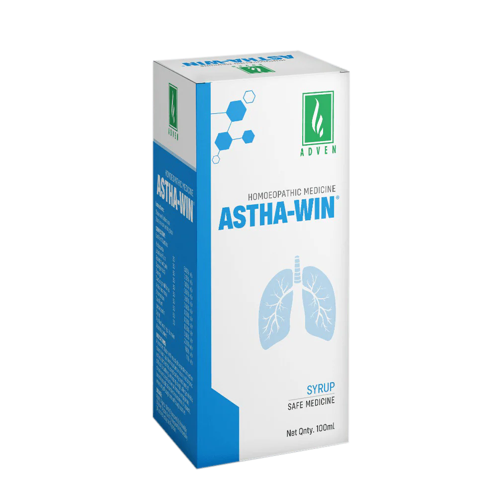 Adven’s Astha-Win Syrup aids in relieving wheezing, breathlessness, and cough linked to chronic obstructive pulmonary diseases or airway obstruction triggered by factors like viruses, allergens, or exercise. It serves as an effective expectorant and provides relief from symptoms of allergic rhinitis. The syrup supports normal respiratory function and helps reduce the risk of condition exacerbation and fixed airflow limitation by alleviating chronic respiratory tract inflammation and relaxing bronchial smooth muscles.