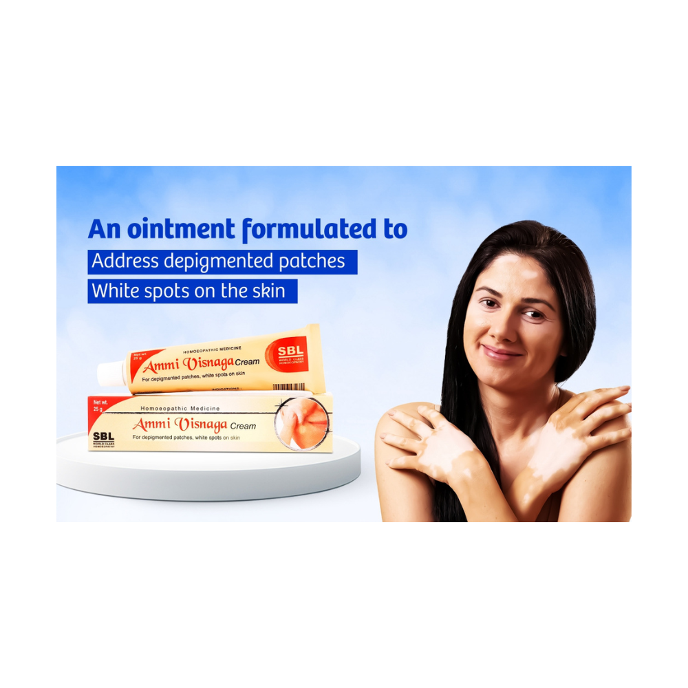 This cream, prepared with Ammi visnaga, is regarded as one of the best vitiligo creams in India due to its targeted action on depigmented areas of the skin. Homoeopathy explains vitiligo not just as a superficial skin issue but as a deep-seated imbalance, and Ammi visnaga is known in valuable practice for its potential to help stimulate repigmentation and support overall skin health.