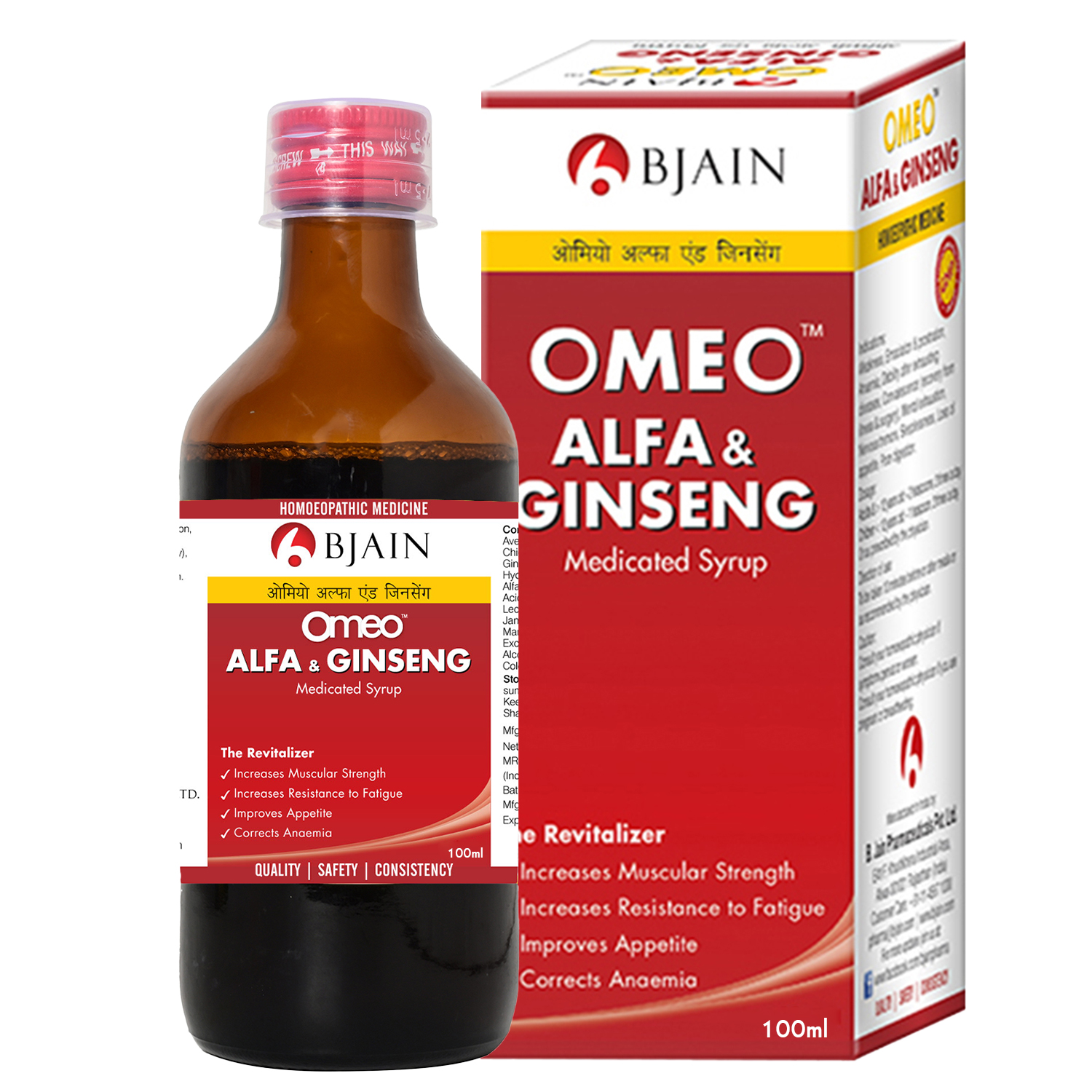 Omeo Alfa Ginseng Syrup from BJain has the medicinal value of ingredients that are known for improving vitality and have been used as a health tonic for ages. It is a homeopathic specialty product for strength & stamina.