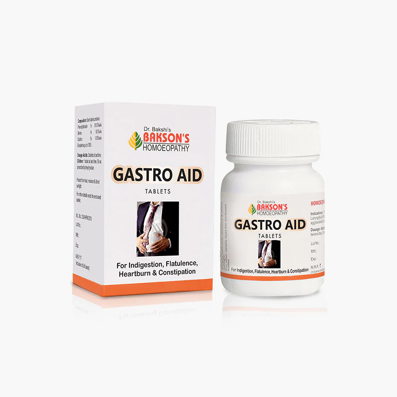 GASTRO AID TABLET, a clinically proven homoeopathic combination is the remedy of choice. It tones up the alimentary canal improves appetite, regulates digestion & thus relieves symptoms commonly associated with disturbances of the gastro-intestinal tract. The potentized homoeopathic ingredients used in micro doses cause no side effects and improve the body’s tolerance.