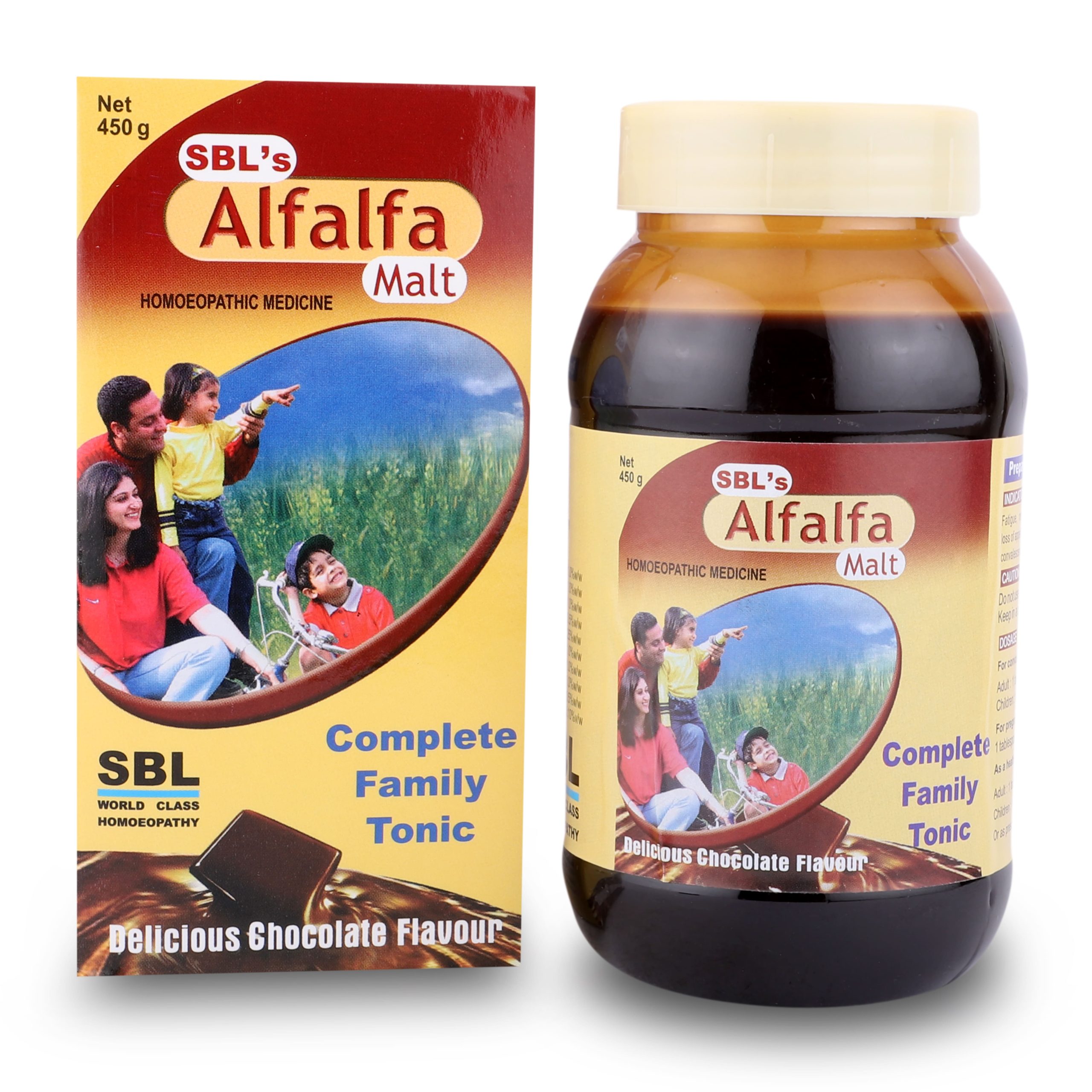 Alfalfa Malt is a potent energy stimulant enriched with minerals, amino acids fortified, and potent homoeopathic medicinal herbs well blended in a delicious chocolate-flavored malt base.
